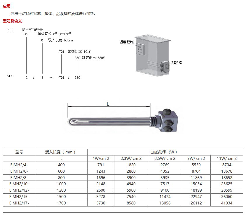 浸入式電加熱器顧名思義是將電加熱器浸入液體進行加熱,主要特點是由于電加熱器浸入液體中,電加熱器所散發的能量均被被加熱的液體所吸收,因此能效非常高,再加上體積小,易于控制等優點,被廣泛用于石油,化工和冶金等領域,是石化行業理想的換熱設備。